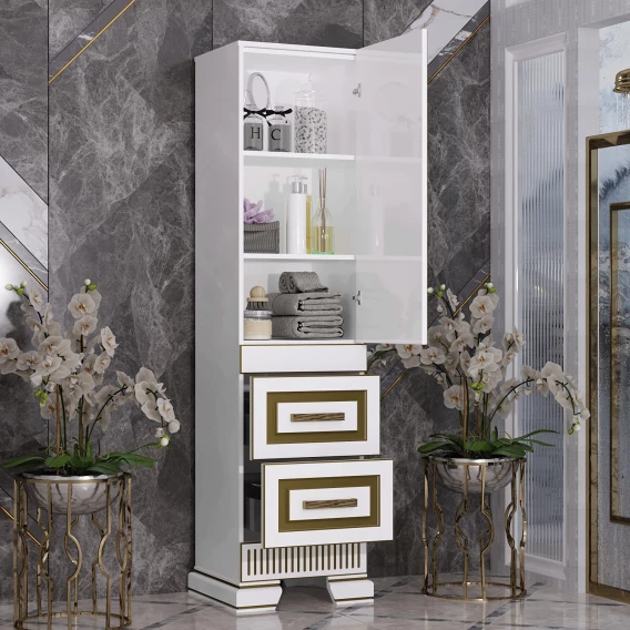 Пенал Opadiris Оникс Z0000005742 напольный R, белый золотая патина
