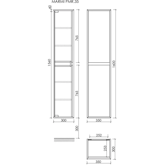 Пенал Sancos Marmi 1.0 PMR35ECH подвесной L/R, дуб чарльстон