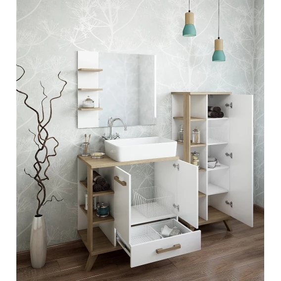 Пенал Sanflor Ингрид C000005877 напольный R, белый матовый/вяз швейцарский