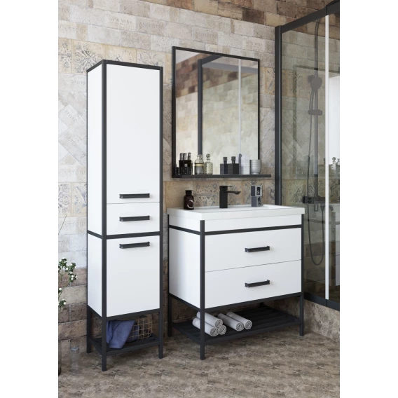 Пенал Sanflor Норд C04608 напольный R, белый матовый/черный