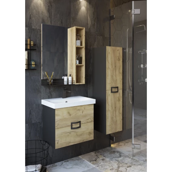 Пенал Sanflor Выборг C16297 подвесной L/R, дуб крафт золотой/черный матовый