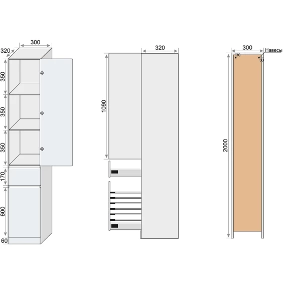 Механизм доводчика, Ящик, Полочка, Бельевая корзина