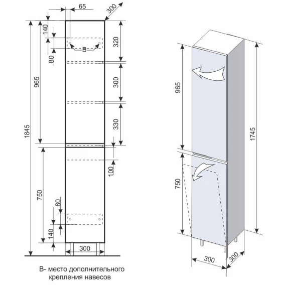 Механизм доводчика, Ящик, Полочка, Бельевая корзина, Ножки