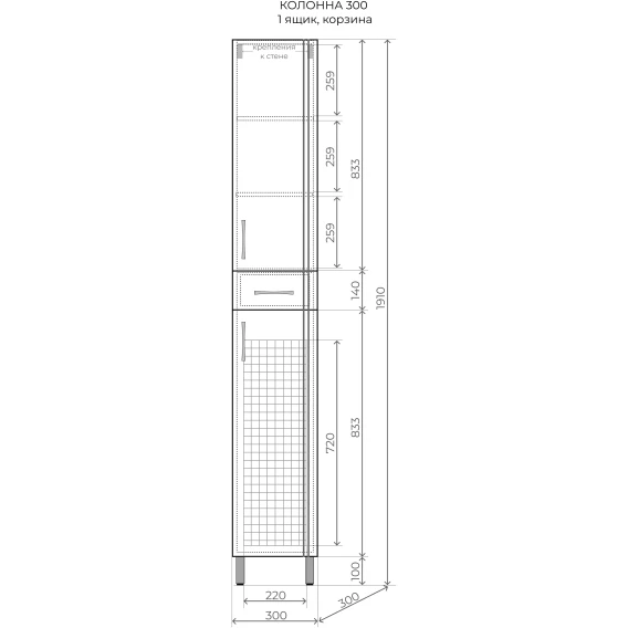 Ящик, Полочка, Ручки, Бельевая корзина, Ножки