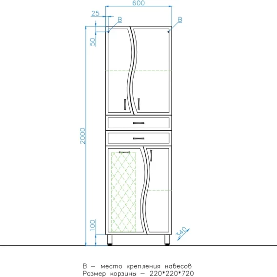 Механизм доводчика, Ящик, Полочка, Ручки, Бельевая корзина, Ножки