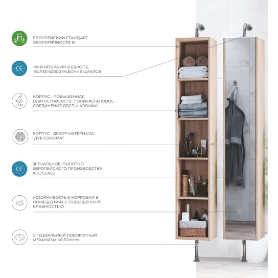 Пенал Vigo Grani pnp.GRI.30 напольный, поворотный, дуб золотой