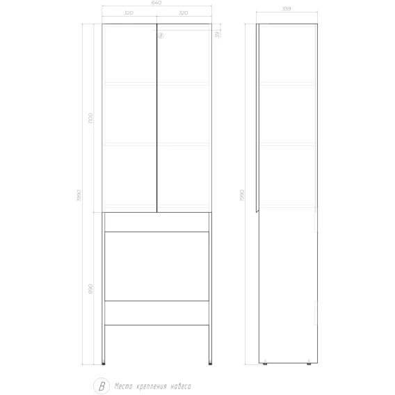 Пенал Vigo Wing shnr.WIN.64.2D белый напольный, над стиральной машиной, белый