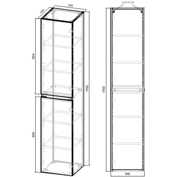 Пенал Vincea Norma VSC-2NF170VO подвесной L/R, дуб винтаж