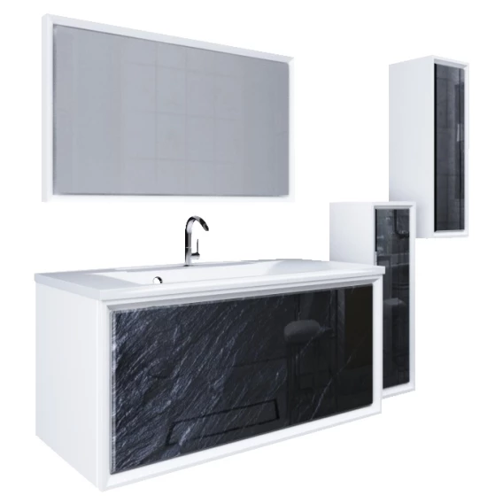 Шкаф черный дикий камень/белый глянец R Marka One Seattle У73160