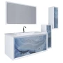 Шкаф голубой мрамор/белый глянец L Marka One Seattle У73219