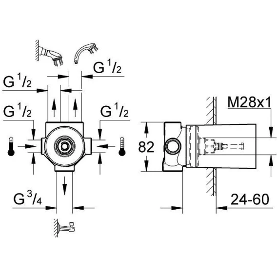 • встраиваемый механизм, 1/2"