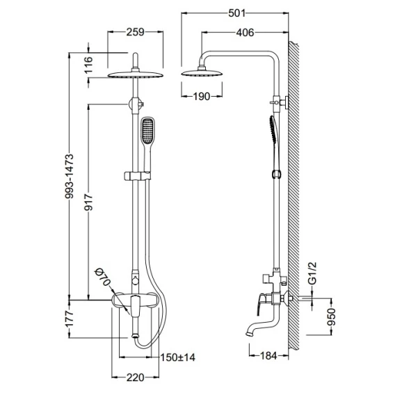Душевая система 259x190 мм Schein Pillar 493HS/Z8005055PT