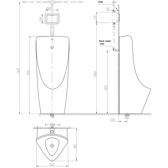 Писсуар Arrow AN633_1 напольный, скрытый подвод воды, белый