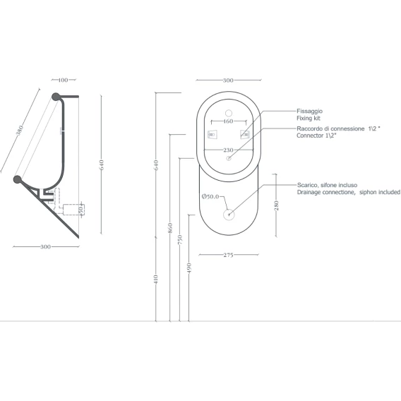 Писсуар Artceram Babila BRO001 17 00 подвесной, скрытый подвод воды, черный матовый