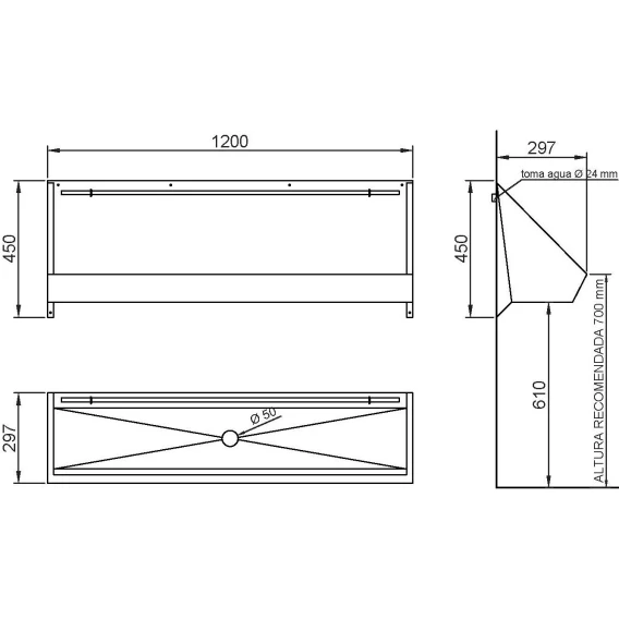 • Настенный писсуар из нержавеющей стали AISI 304.