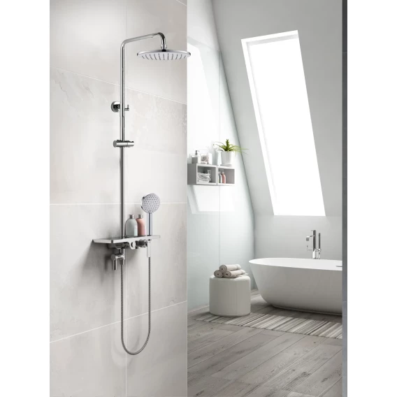 Аэратор, Эксцентрики, Душевой шланг, Душевая лейка, Держатель для душевой лейки, Полочка, Верхний душ, Смеситель, Кронштейн, Штанга душевая