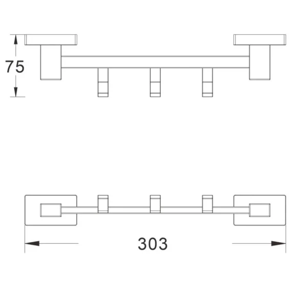 Планка с крючками Belz B90415-3 для ванны, оружейная сталь матовый