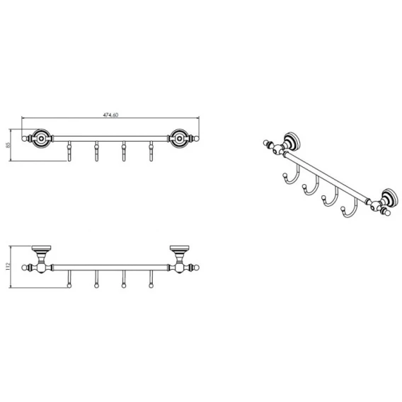 Планка с крючками Camelos Rychmond H1617 для ванны, хром