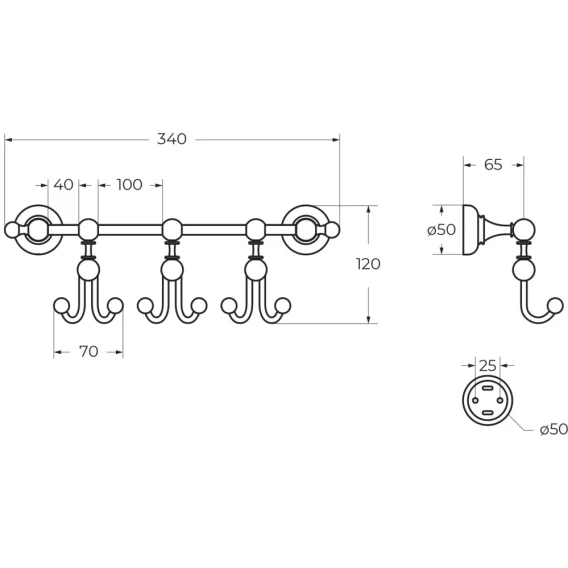 Планка с крючками Schein Rembrandt 061-3CH для ванны, хром