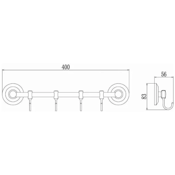 Планка с крючками D-Lin D201853-4 для ванны, хром