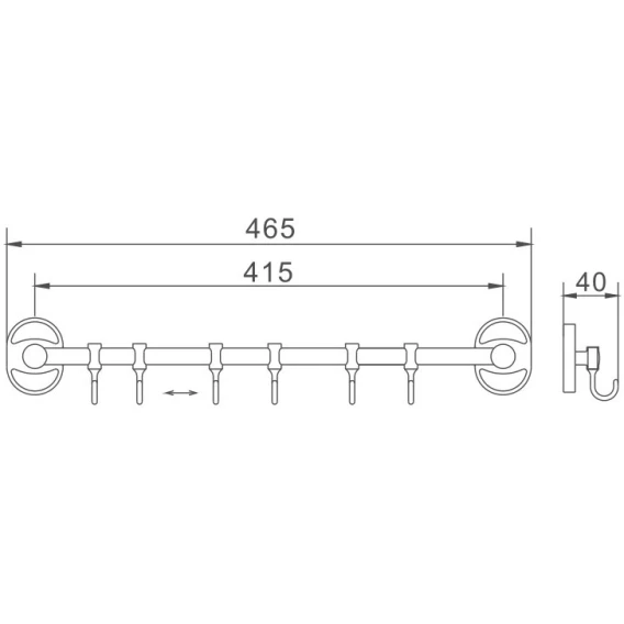 Планка с крючками D-Lin D288700-6 для ванны, хром