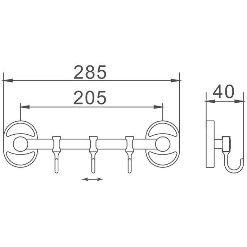 Планка с крючками D-Lin D289700-3 для ванны, хром