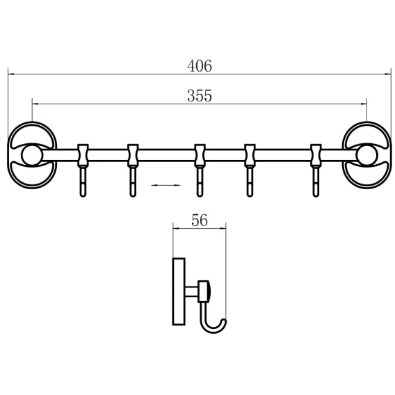 Планка с крючками Fashun A1915-5 для ванны, хром