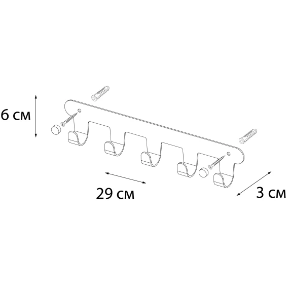 Планка с крючками Fixsen Practica FX-805B-5 для ванны, черный матовый