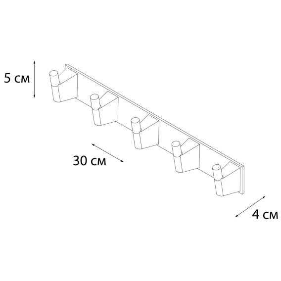 Планка с крючками Fixsen Trend FX-97805-5 для ванны, черный матовый