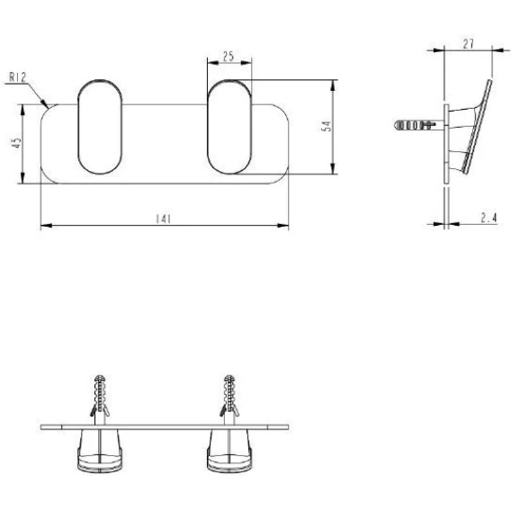Планка с крючками Grocenberg AC0052BL для ванны, черный матовый