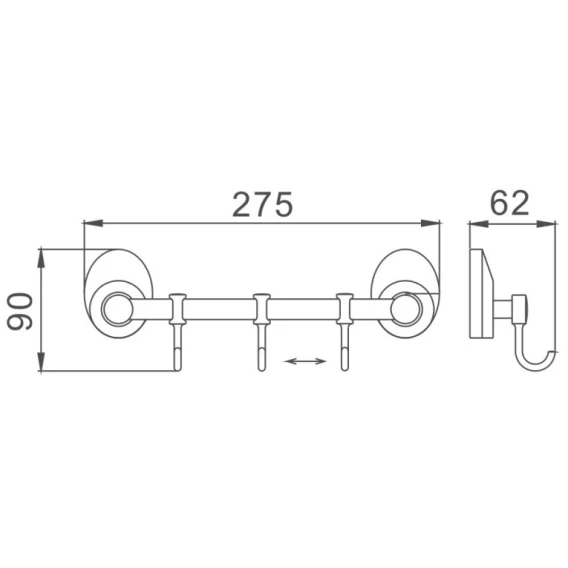 Планка с крючками Haiba HB1615-3 для ванны, хром