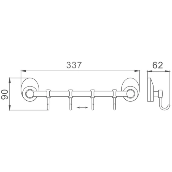 Планка с крючками Haiba HB1615-4 для ванны, хром