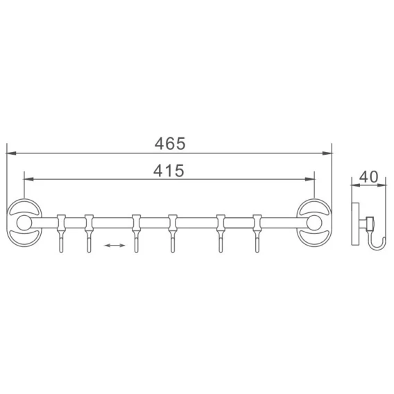 Планка с крючками Haiba HB1915-6 для ванны, хром