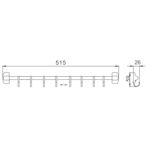 Планка с крючками Haiba HB209-8 для ванны, хром