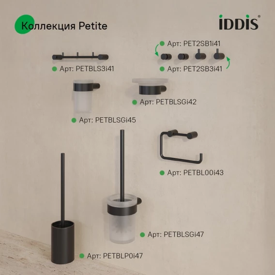 Планка с крючками IDDIS Petite PETBLS3i41 для ванны, черный матовый