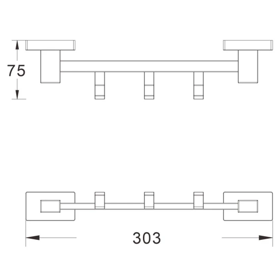 Планка с крючками Shevanik SG5631T для ванны, оружейная сталь