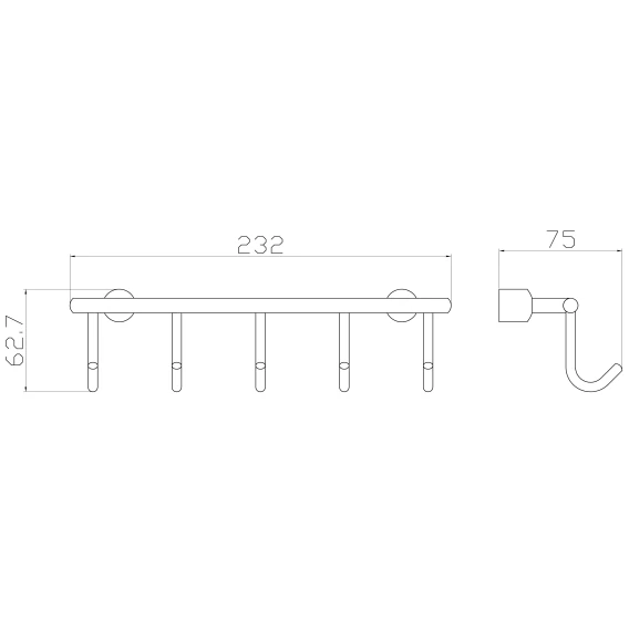 Планка с крючками Wonzon & Woghand WW-9382-5 для ванны, хром