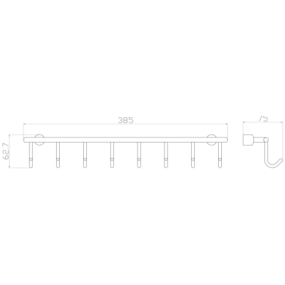 Планка с крючками Wonzon & Woghand WW-9382-8 для ванны, хром