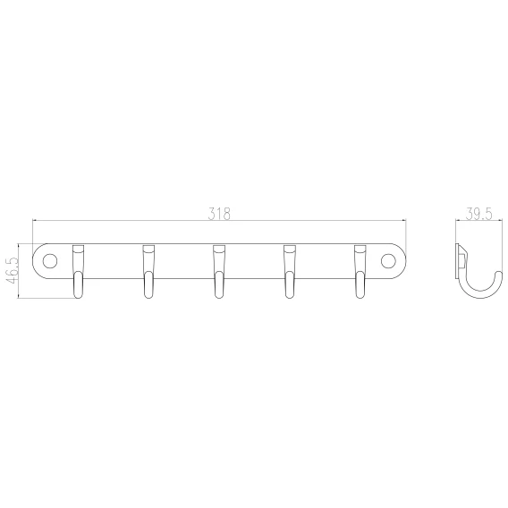 Планка с крючками Wonzon & Woghand WW-9384-5 для ванны, хром