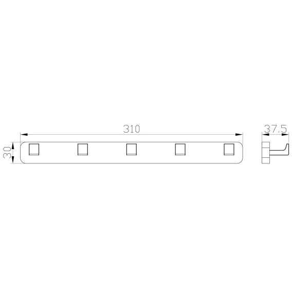 Планка с крючками Wonzon & Woghand WW-9555 для ванны, хром
