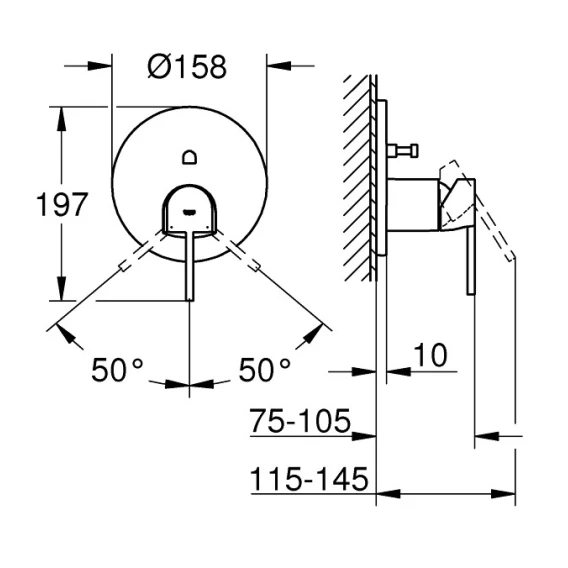 • с настенными розетками GROHE FastFixation(скрытые эксцентрики, уплотнение, скрытый монтаж)