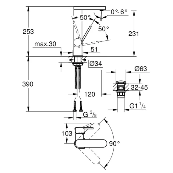 Смеситель для раковины с донным клапаном Grohe Plus 23873003