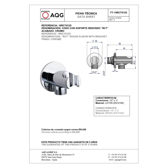 Подключение для душевого шланга с держателем AQG RCT 19RCT0125 хром