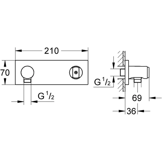 • для встраиваемого механизма 35 034 000 (подключения 1/2") приобретаемая отдельно