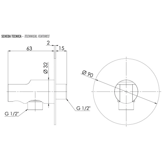 Подключение для душевого шланга с держателем Remer 337XVO