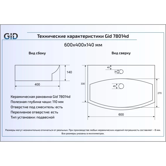 Раковина 60x40 см GID Simple N 78014D