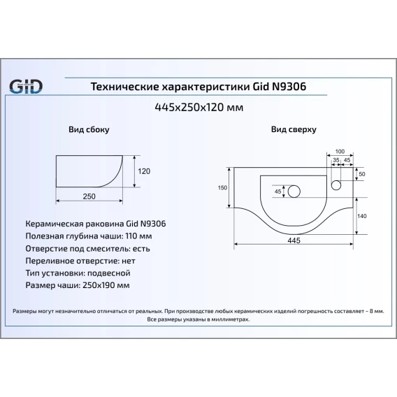 Раковина 44,5x25 см GID Simple N N9306