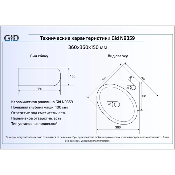 Раковина 36x36 см GID Simple N N9359