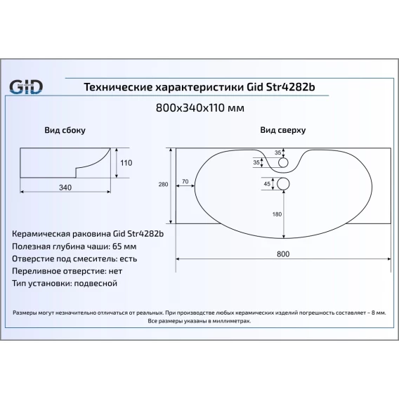 Раковина 80x34 см GID Simple N Str4282b