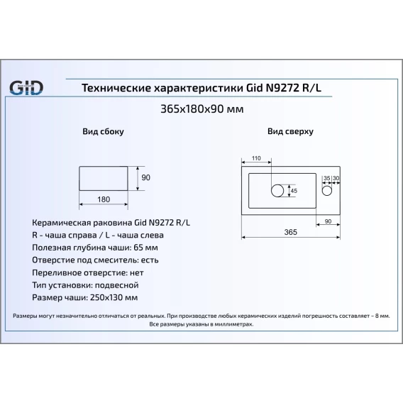 Раковина 36,5x18 см GID Simple N N9272L